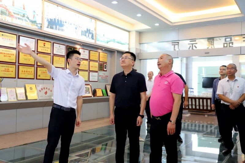 走訪車間和產品展廳過程中,黃淦雄董事長、盧總向陳主任一行介紹了公司主營業(yè)務及產品應用情況,陳主任認真聆聽并仔細觀摩產品,不時提出問題和建議進行交流。