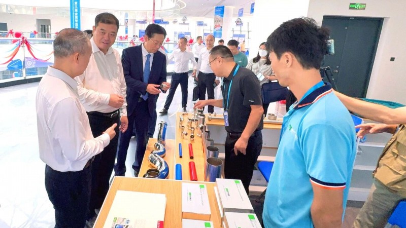 核心提示:中國(guó)(廣東云浮)-RCEP 第三屆產(chǎn)業(yè)合作大會(huì)期間,云浮市委書(shū)記盧榮春、市長(zhǎng)李慶新、市委副書(shū)記楊驍婷等市領(lǐng)導(dǎo),與廣東省不銹鋼材料與制品協(xié)會(huì)會(huì)長(zhǎng)林澤榆及參會(huì)嘉賓一同巡館,并參觀了民樂(lè)管業(yè)的展位。